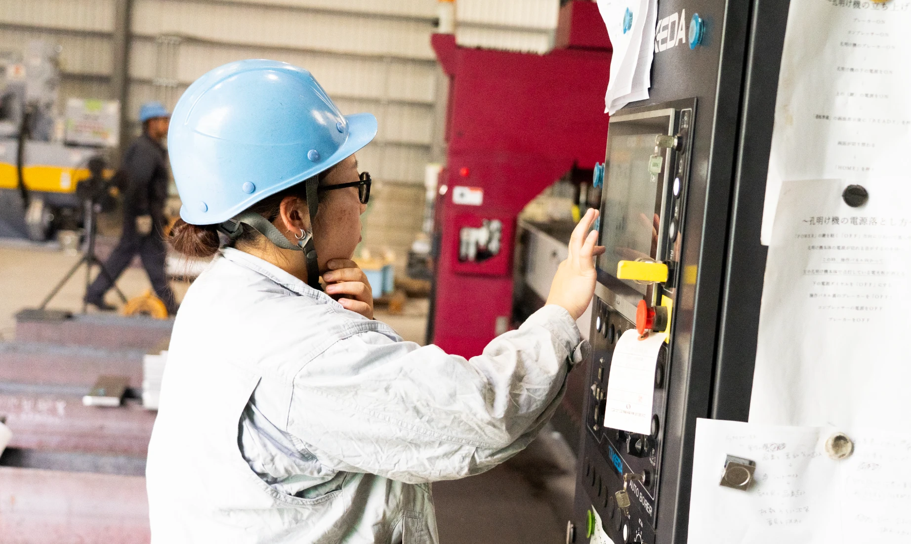 入社~2年・・・倉庫で在庫管理と物流手配を学び、半年後にはシャーリングマシンでの切断加工に携わる。