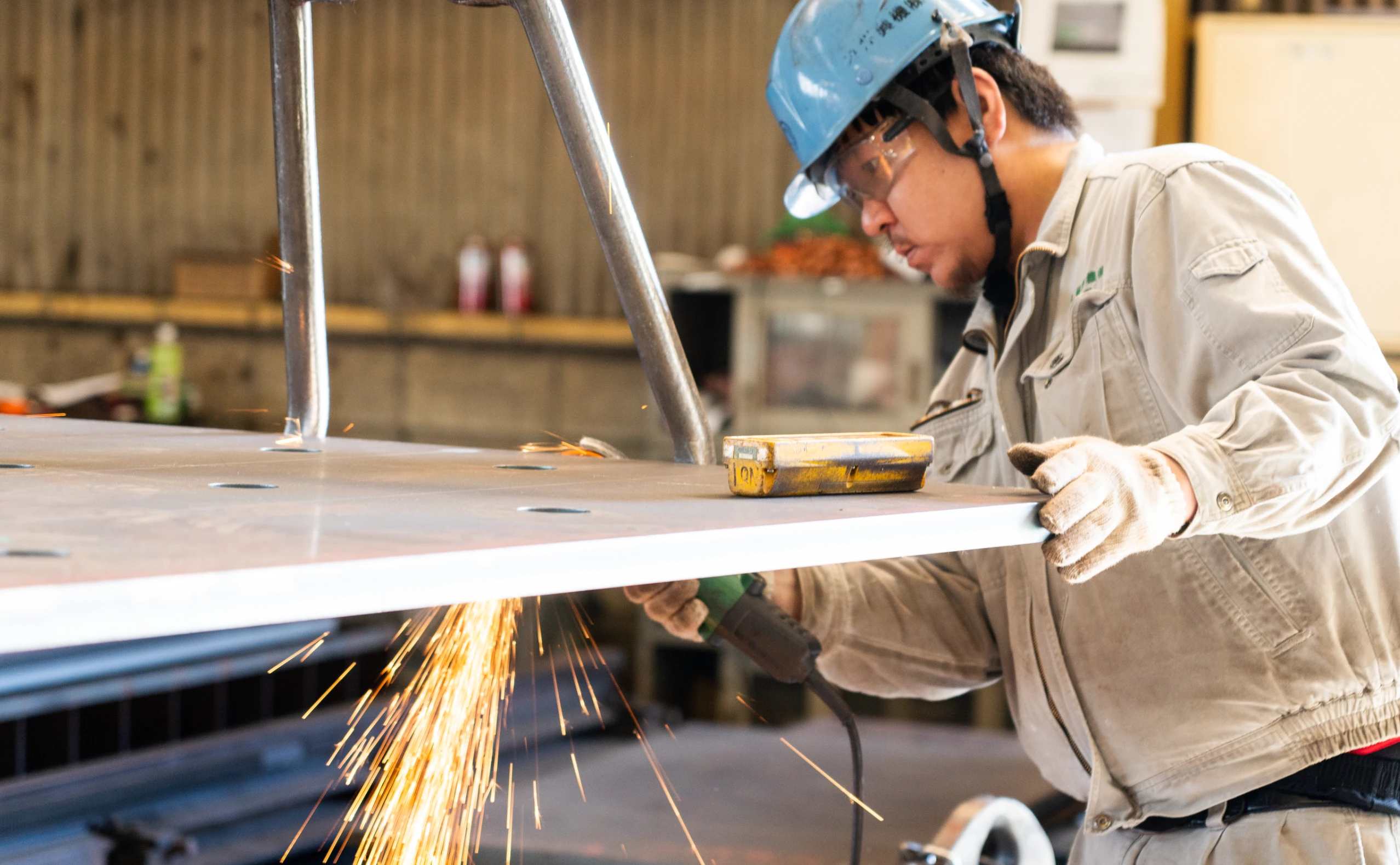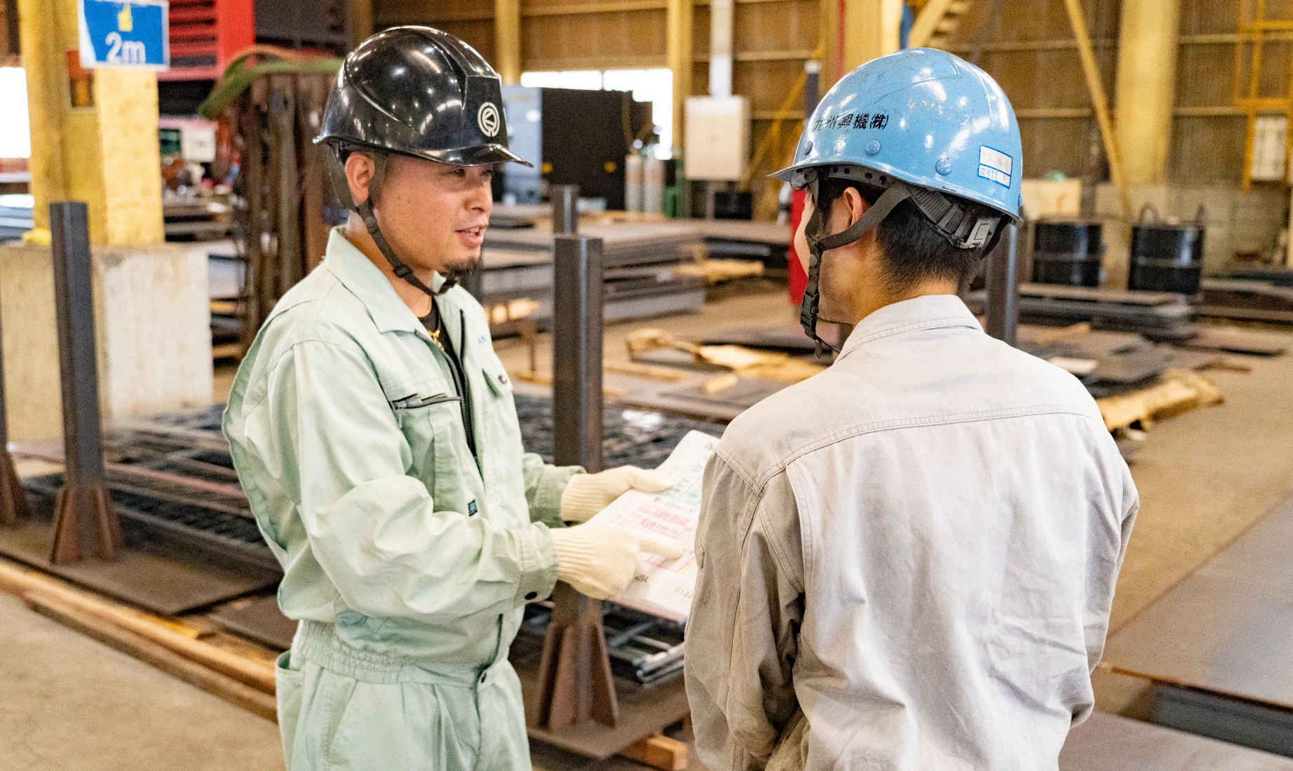 2年~5年・・・工場でのプラズマ切断機の作業をメインに、各種機械を使った加工作業を覚えていく。3年目にはほぼすべての加工作業をマスターし、現場の状況に合わせて段取りを組んで作業ができるようになる。
